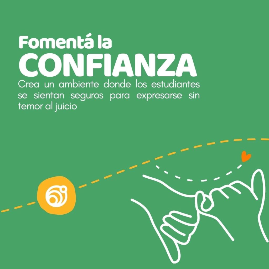 Para que los estudiantes se sientan cómodos y dispuestos a participar, es esencial crear un ambiente donde puedan expresarse sin temor al juicio. La confianza mutua entre el docente y los estudiantes es la base sobre la cual se construyen las relaciones y el aprendizaje. Asegúrate de ser un referente de apoyo y apertura, donde cada estudiante pueda ser auténtico.
