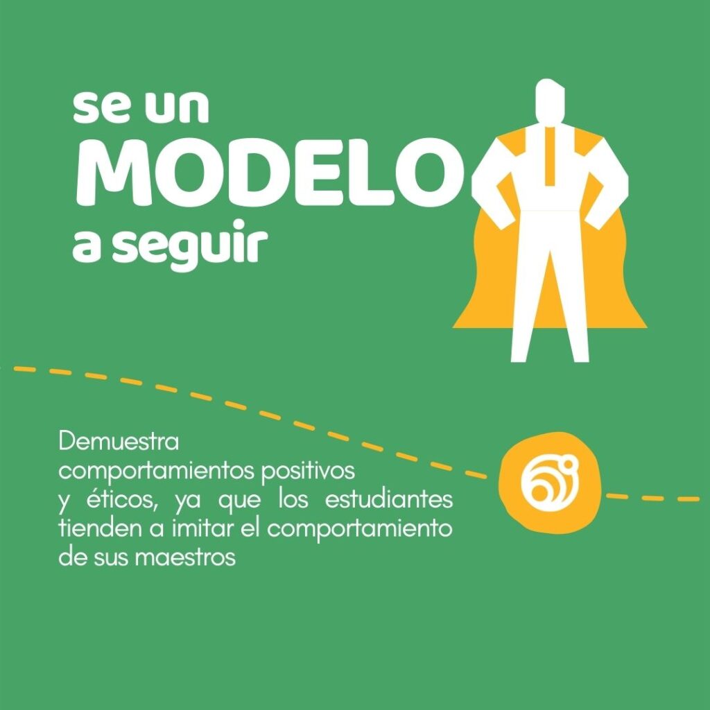 Los estudiantes tienden a imitar el comportamiento de sus maestros. Por ello, como docente, es importante demostrar comportamientos positivos y éticos. Sé un modelo de respeto, integridad y responsabilidad, ya que tu ejemplo impacta directamente en el comportamiento de tus estudiantes y en el ambiente del aula.